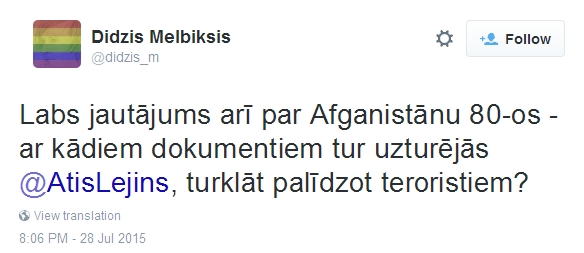 Starp citu, viens no pazīstamākajiem modžahedu līderiem bija Ahmeds Šāhs Masuds – vai šo cilvēku Melbiksis arī sauc par teroristu?! To pašu Masudu, kurš līdz pēdējam cīnījās pret talibiem un Bin Ladenu. To pašu Masudu, kurš Briselē uzrunāja Eiropas Parlamentu, brīdinot, ka viņa rīcībā ir informācija par uzbrukumu ASV, un tika novākts divas dienas pirms 2001. gada 11. septembra terorakta (izliekoties par žurnālistiem, viņu “intervēja” Al-Qaeda aģenti, kuriem kamerā bija spridzeklis). Saukt šo cilvēku pašu par teroristu ir vienkārši noziegums, ne tikai nepiedodama muļķība!
